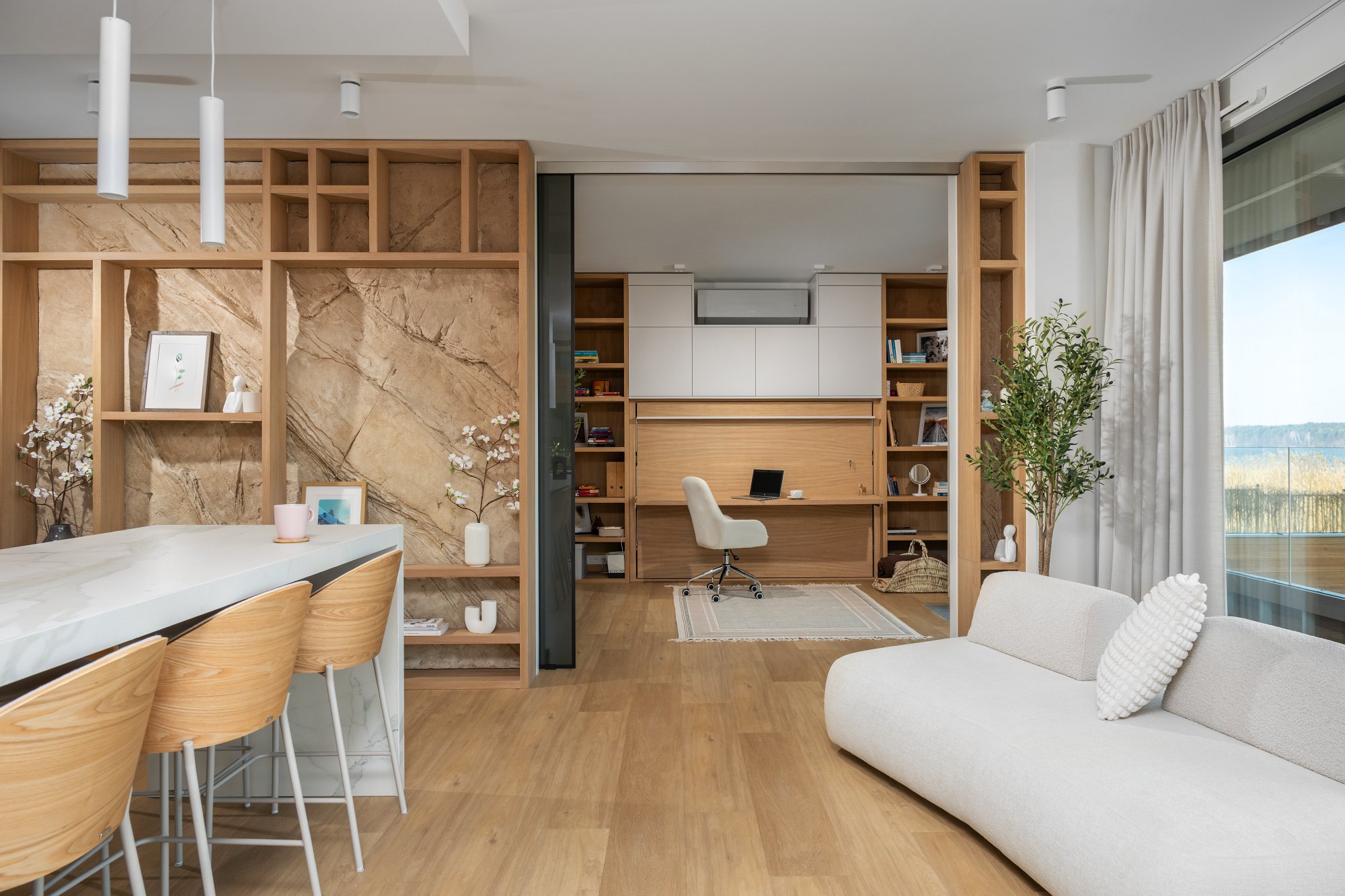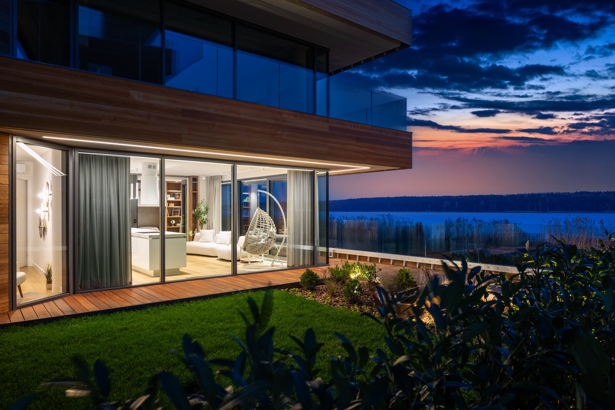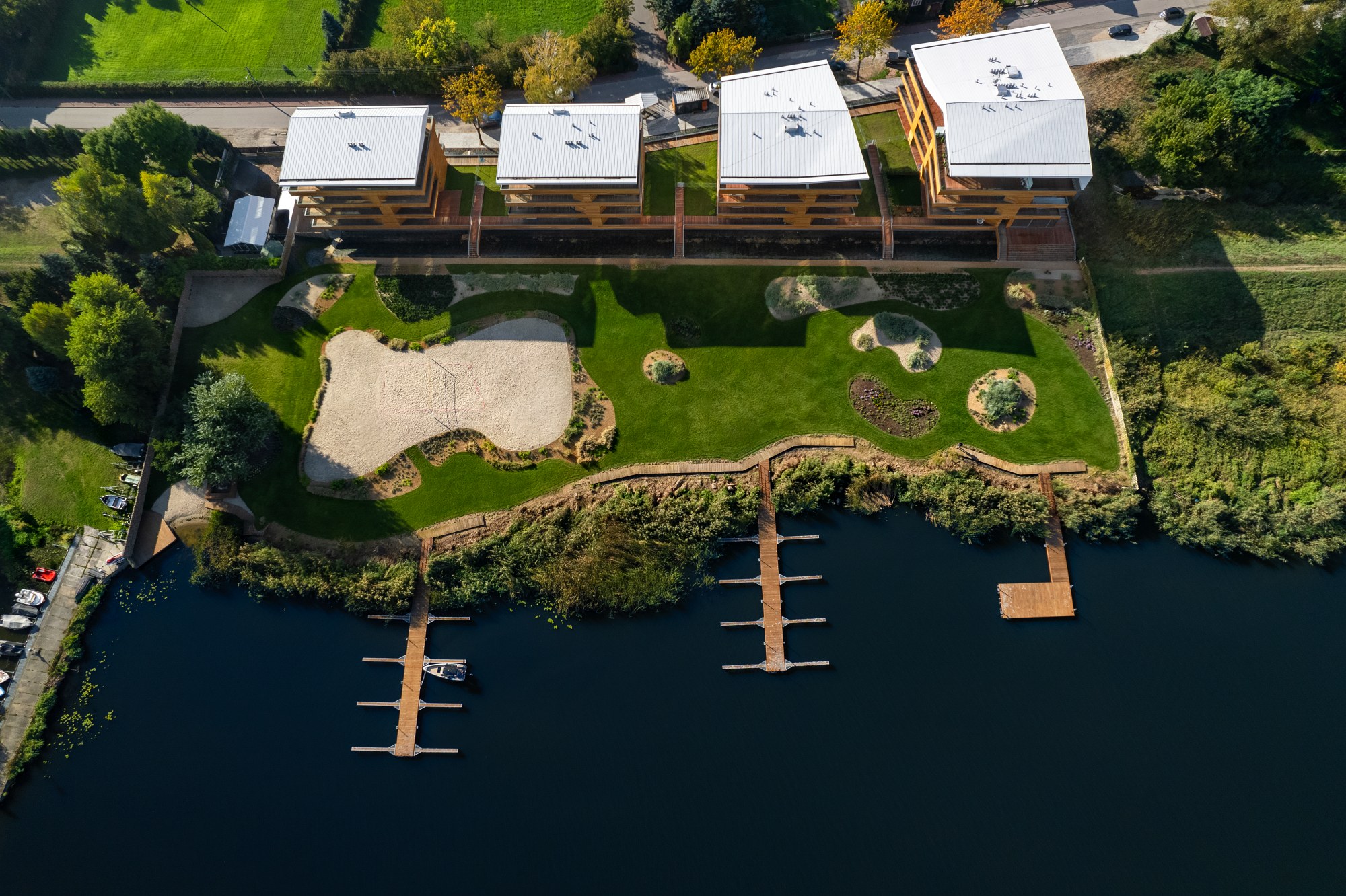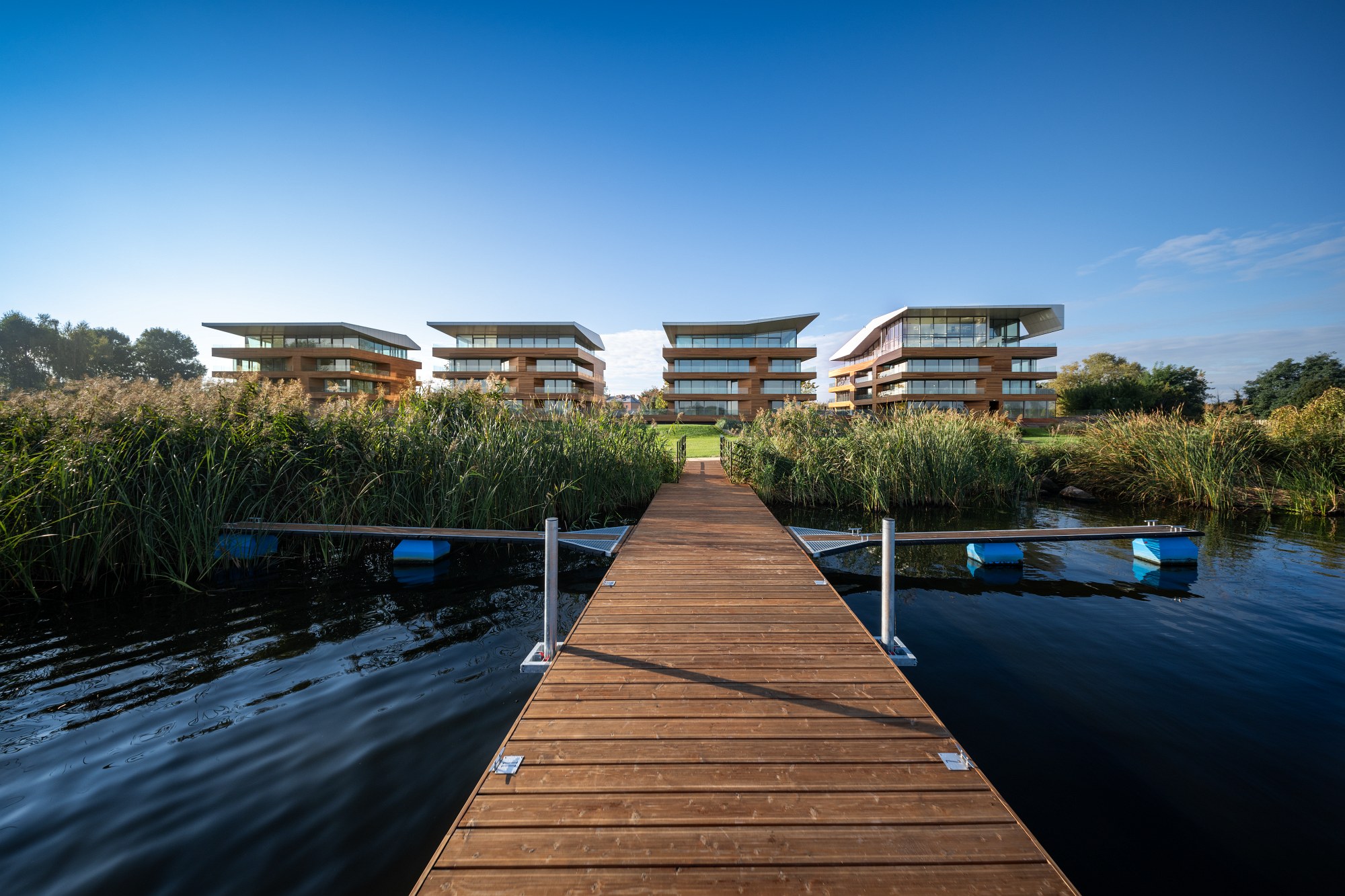 Wyobraź sobie, że pracujesz w przestronnym biurze z panoramicznymi oknami, podziwiając jednocześnie piękną naturę, widoki na wodę, przelatujące ptaki. Po pracy możesz zrelaksować się na wygodnych leżakach na prywatnym tarasie, delektując się zachodem słońca. Jeśli wolisz aktywnie spędzać czas, skorzystaj z podgrzewnego basenu, siłowni lub wybierz się na spacer brzegiem zalewu.