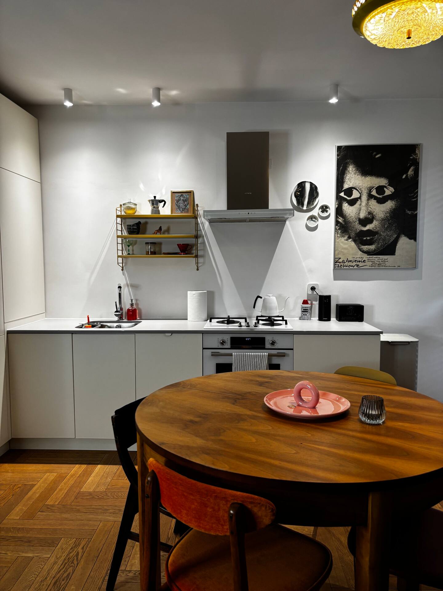 To mieszkanie zaprojektowałam dla siebie – wypełnione detalami, które uwielbiam, i atmosferą, w której czuję się jak w domu. Starannie dobrałam każdy element, aby zapewnić komfort i relaks. Łączy w sobie styl vintage z nowoczesnym minimalizmem, tworząc spokojną i ciepłą przestrzeń. Teraz z radością udostępniam je gościom, ponieważ spełniłam swoje marzenie o przeprowadzce na Mazury, gdzie obecnie mieszkam. Mam nadzieję, że poczujecie się tu tak dobrze, jak ja.